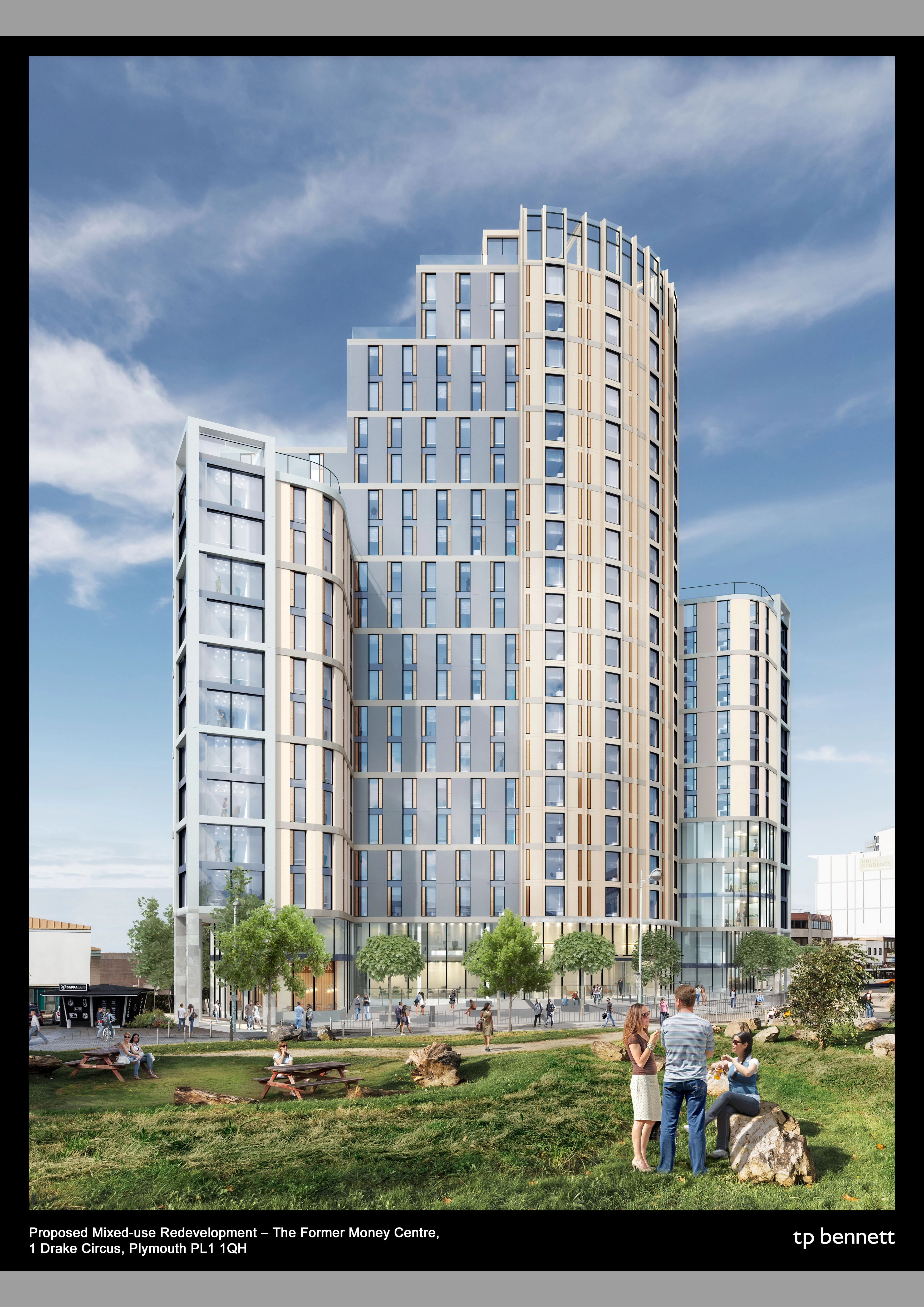 Plymouth City Council passed a resolution to approve plans to demolish the existing Money Centre building at Drake Circus and create a 21-storey modern building in keeping with the city scape.
