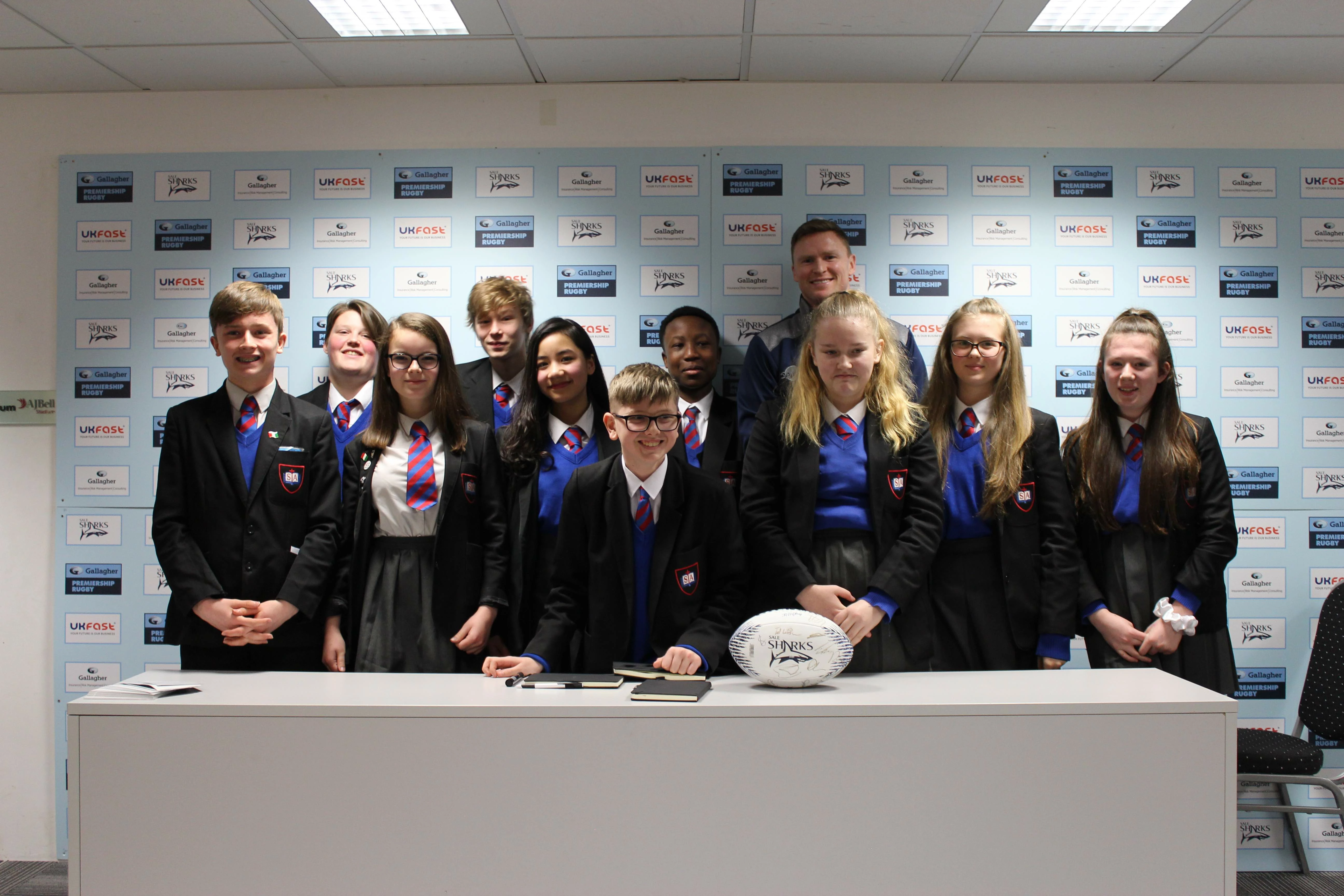 Sale Sharks and club sponsor Bollington Insurance joined forces to organise a career day for a group of Year 9 students from St Antony’s College in Urmston, Greater Manchester.