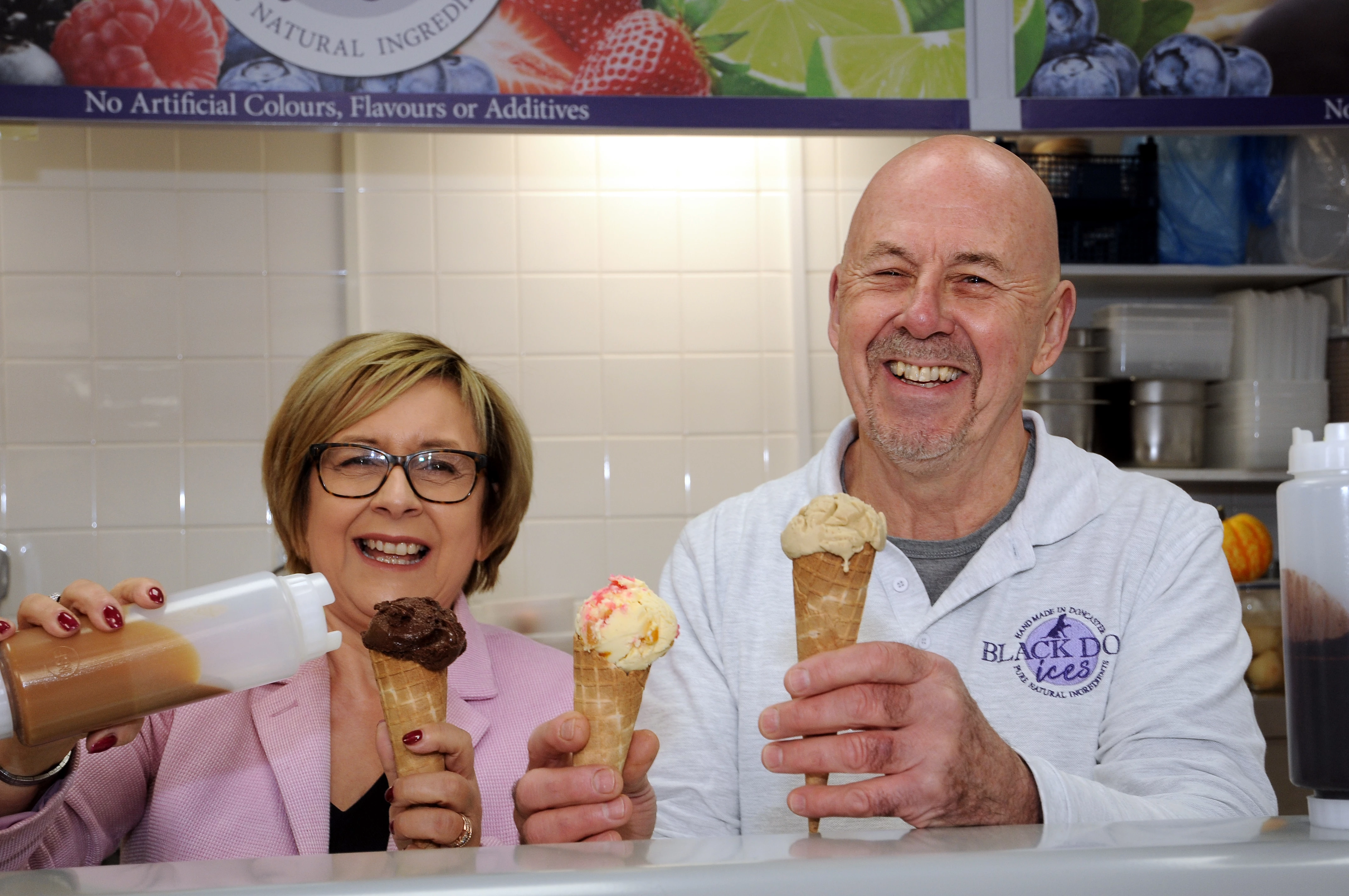 Richard’s ice creams are produced using the classic French custard method and are made using wholly natural and locally sourced ingredients with no artificial flavours, additives or preservatives.– calling upon fellow traders from Doncaster market to supply his business, and even raiding the fruit bushes in his own garden! Today, Black Dog Ices produces over 14 different flavours of ice cream and 15 different flavours of ice lollies. Richard has even helped ice cream lovers to enjoy long-lost flavours which have all but disappeared from the high street by producing bespoke recipes which are tailored to his customer’s preference. Keen not to rest on his laurels Richard is now hoping to expand his business by collaborating with local restaurants and shops, as well as helping South Yorkshire’s biggest ice cream lovers to enjoy a range of tasty treats.