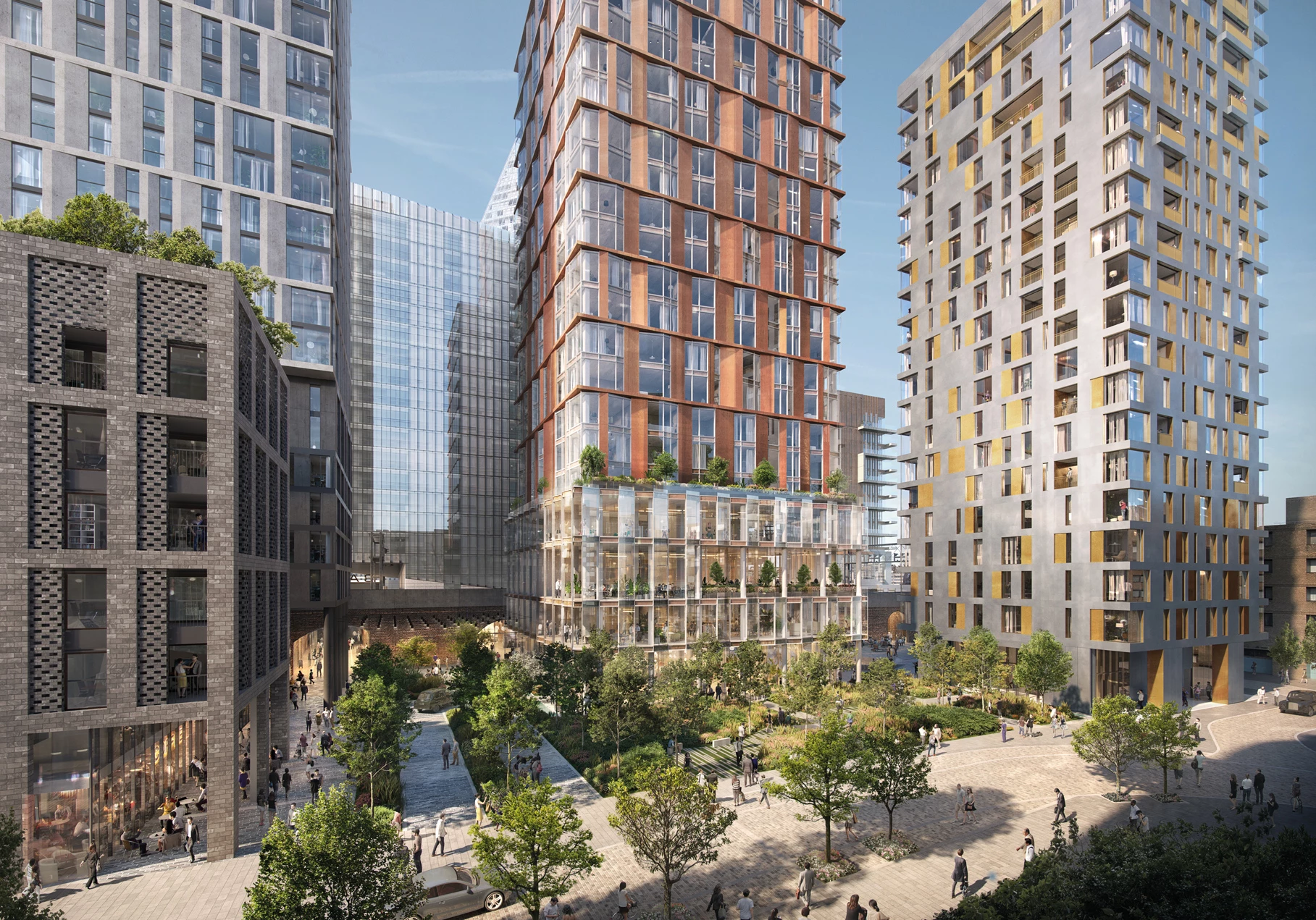 The 1.4 million sq ft mixed-use development will balance thermal energy across its 8 new buildings and 14 restored railway arches, with each building extracting or rejecting energy into the network.