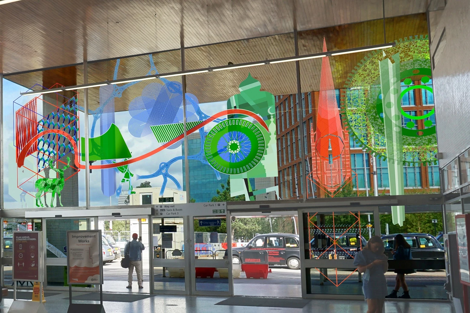 The major infrastructure programme, which is set to be completed later this year, will feature vinyl artwork on the main concourse windows of the existing station by artist Christopher Tipping.
