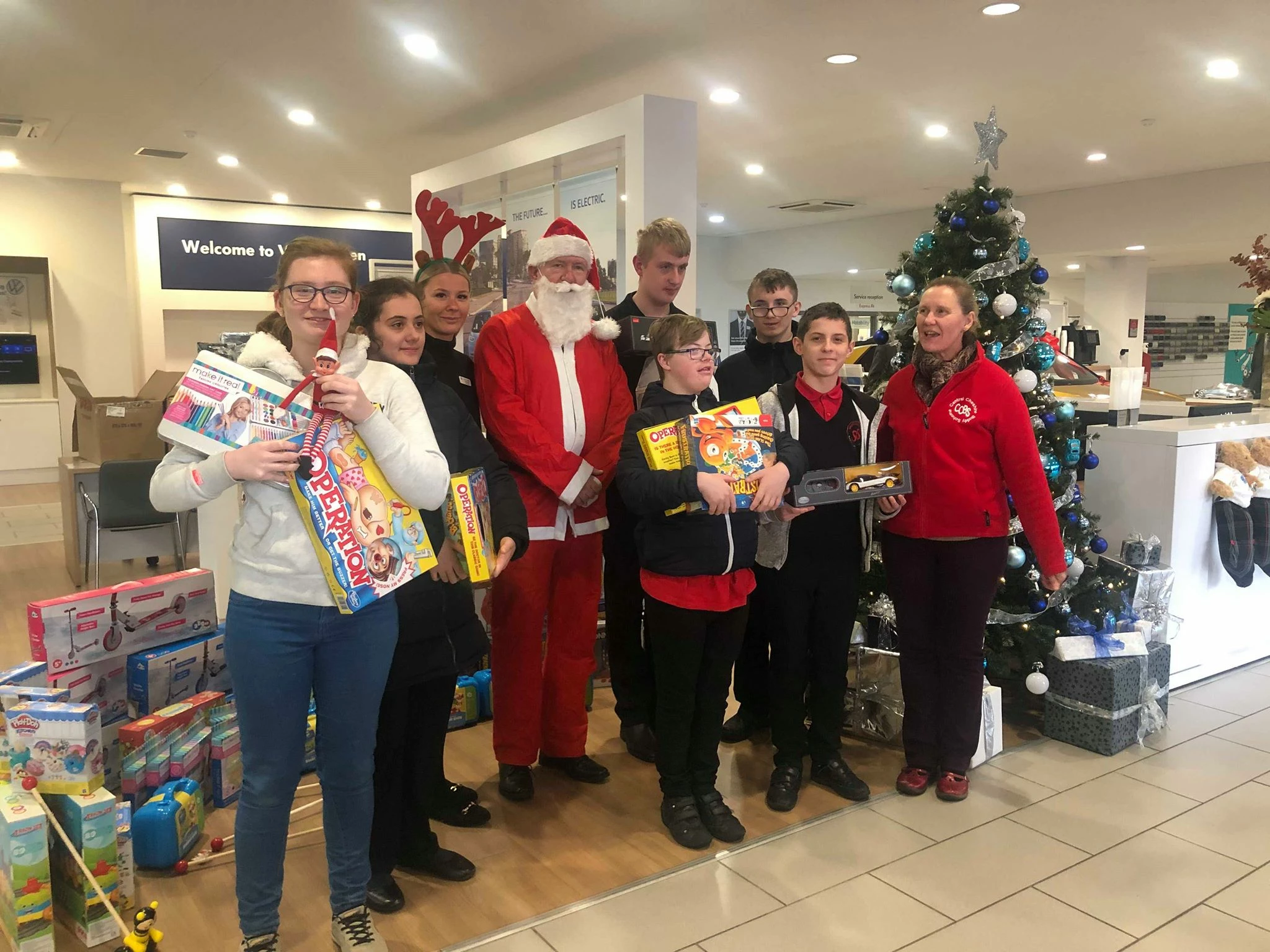 Cheshire Buddies, is a charity which supports children, young people and their families, who are living with disabilities; Brand Manager, Andy Poole, and his team were delighted to welcome them to the showroom, with Sales Executive, Martin Kysh acting as Santa, ably assisted by his Chief Elf, Zoe Baker, who also moonlights as a Receptionist at Crewe VW.